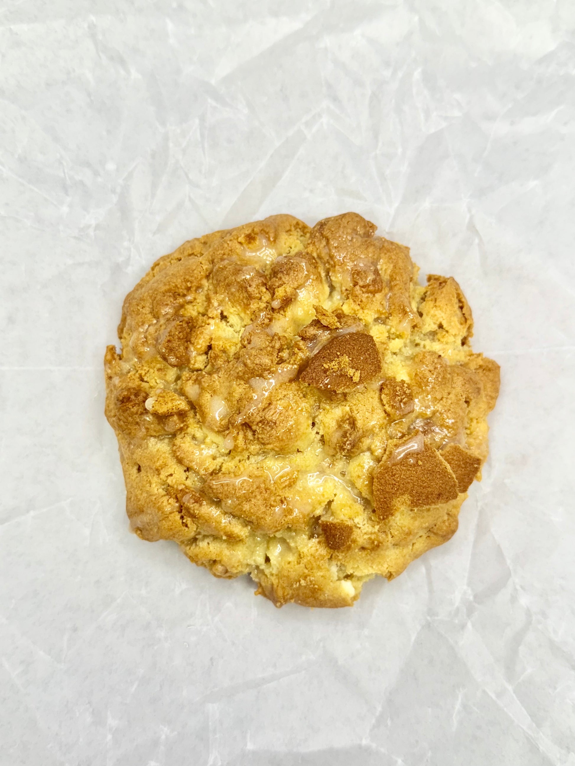 Get ready for a flavor-packed trip to nostalgia with our Banana Pudding Cookie — a gourmet twist on a classic Southern favorite. This thick, chewy cookie is loaded with creamy white chocolate chips and crushed Nilla Wafers baked right into the dough, delivering the comforting taste of banana pudding in every bite. Topped with a luscious drizzle and a golden Nilla Wafer crumble, it’s the perfect balance of sweet, creamy, and crunchy.