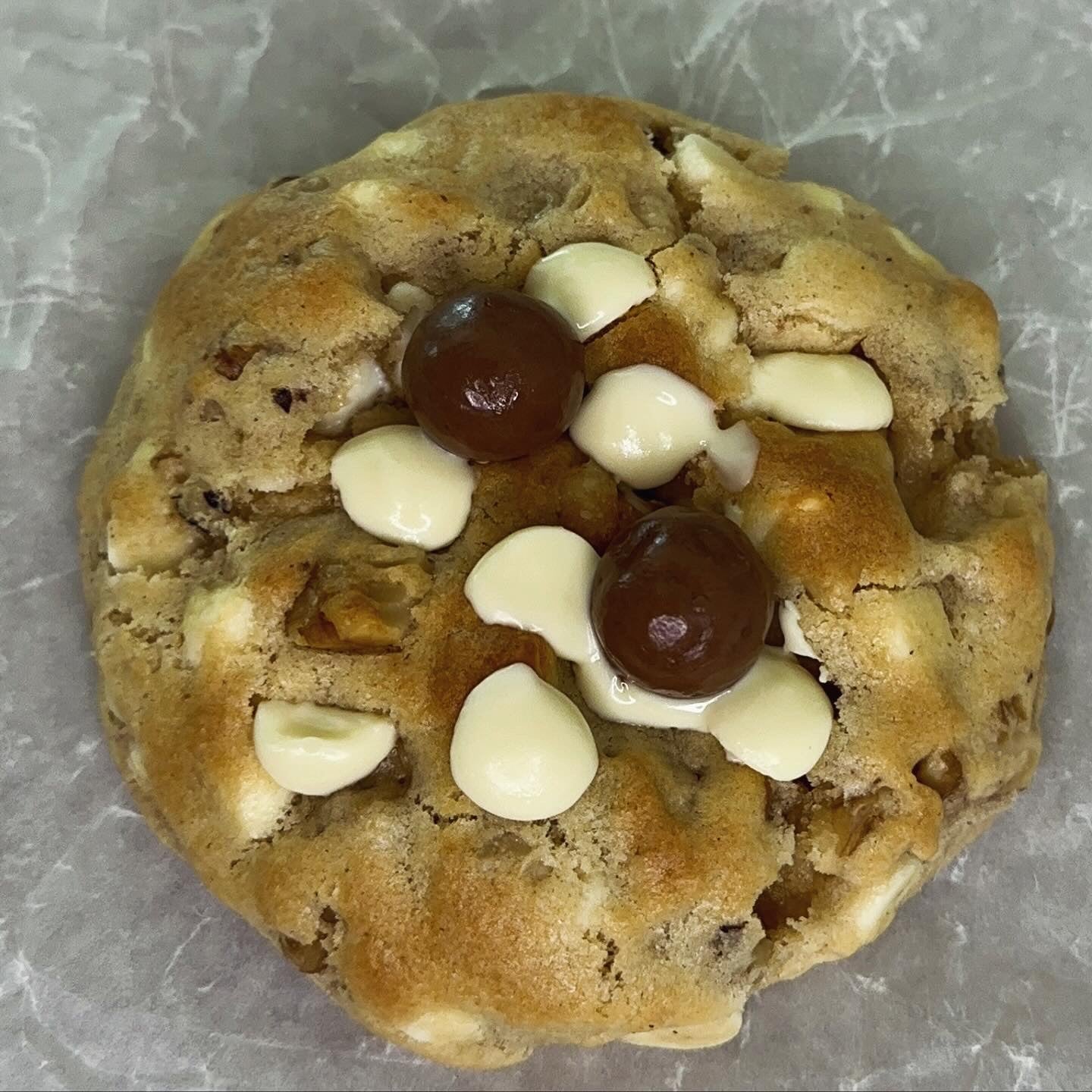 This cookie combines the crunch of premium walnuts with the creamy sweetness of white chocolate chunks, all baked to perfection. Inside, you’ll discover a rich, hand-crafted choco-walnut cream filling that adds a velvety, indulgent layer of flavor. The smooth chocolate blends seamlessly with the nutty richness, creating a decadent experience in every bite. Perfect for those who crave a sophisticated and satisfying sweet treat, this cookie is pure bliss from the first taste to the last!